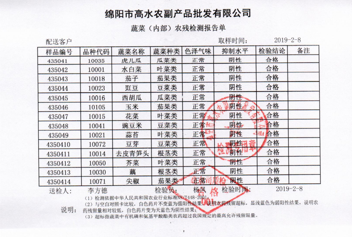 高农司农残检测报告单