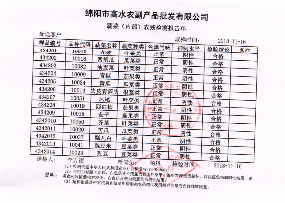 高农司农残检测报告单