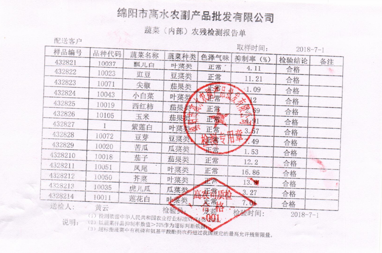 高农司农残检测报告单