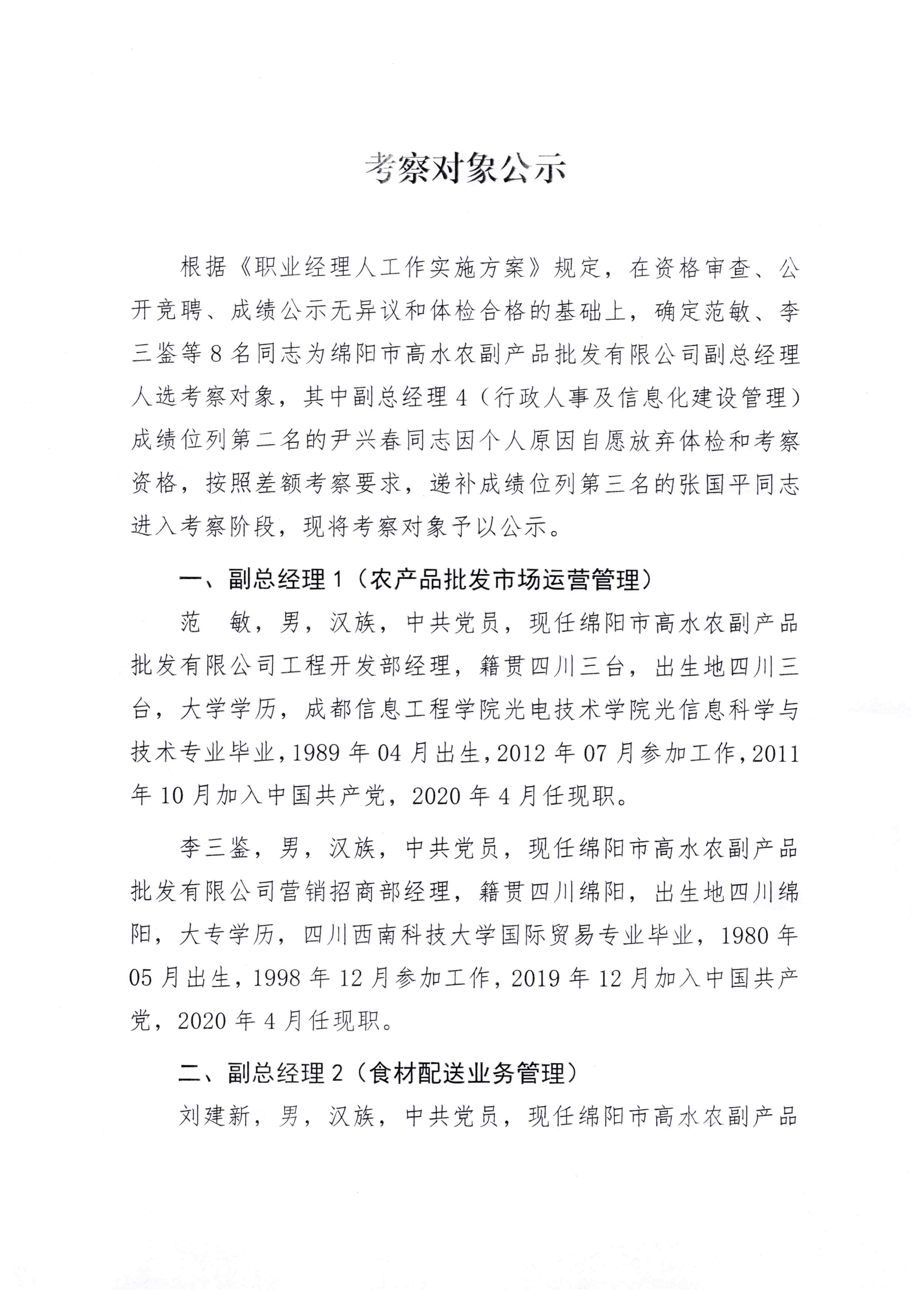 下一篇:绵阳市高水农副产品批发有限公司 关于2022年职业经理人(副总经理) 现场选聘成绩的公示